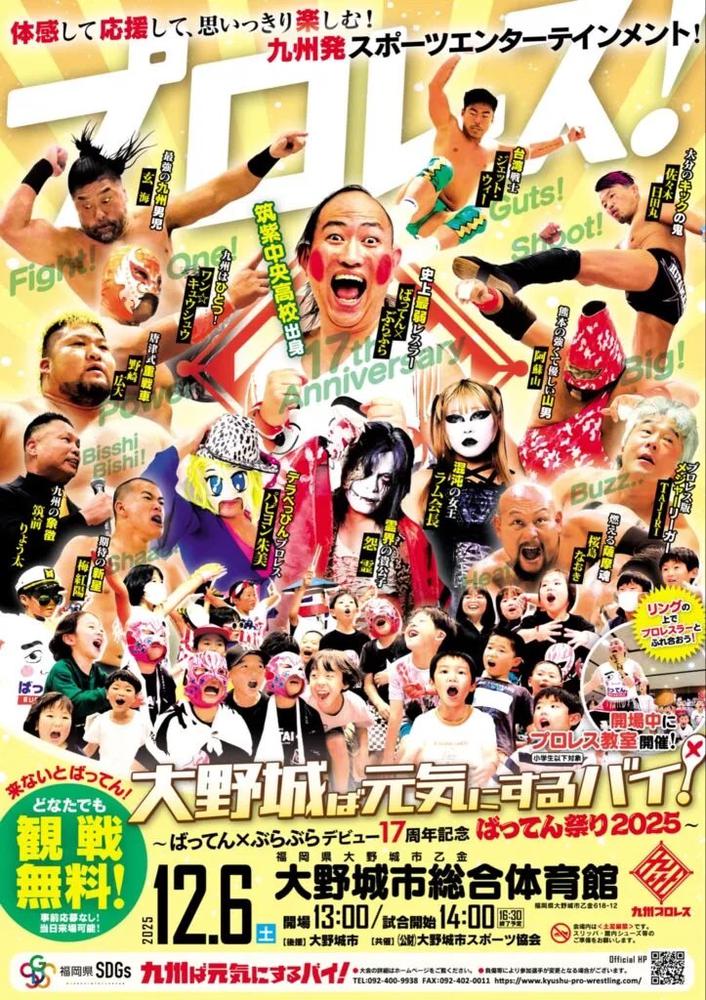 九州プロレス所属・ばってん×ぶらぶら選手(筑紫中央高校出身)が出場する大野城大会が開催されます。